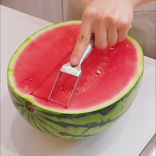 • 2 In 1 Watermelon Fork Slicer Multi-purpose Stainless Steel Watermelon Slicer Cutter Kitchen Fruit Cutting Fork Fruit Divider Kitchen Gadgets