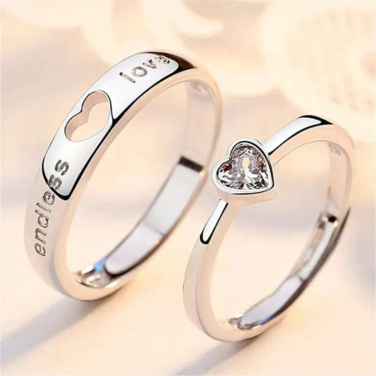 • 2Pcs/sets Zircon Heart Matching Couple Rings Set Forever Endless Love Wedding Ring for Women Men Charm Jewelry