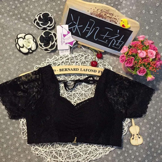 Women Blouse Elegant & Traditional Oktoberfest Half Sleeve Lace and Transparent Bavaria Dirndl Blouse