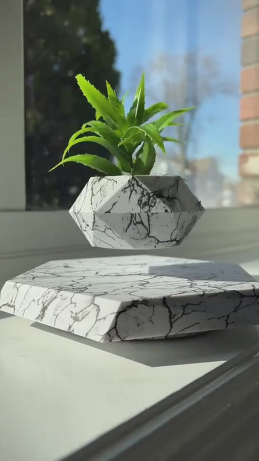 • Levitating Plant Pot Marble Color Floating Planter Magnetic Levitation Bonsai Pot Office Home Decoration Kids Birthday Gift Home Decor