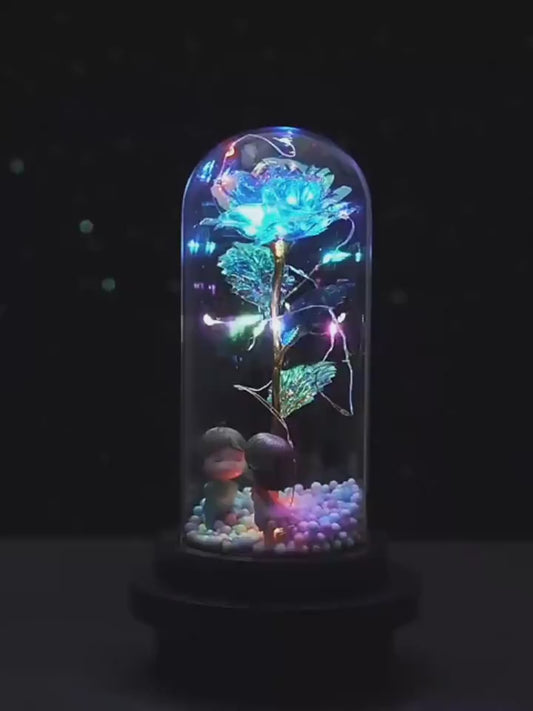 • Beauty Eternal Flower Rose in Flask Wedding Decoration Artificial Flowers Glass Cover for Valentine'S Day Gift Home Decor