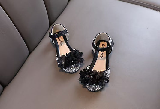 • Children's High Heels Korean Version Princess Fish Mouth Bow Little Girl Crystal Shoes (Copy)