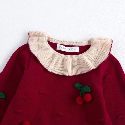 New Winter Baby Girl’s Knitted Long Sleeve Sweater Jumpsuit Fashion Solid Color Round Neck Ruffles Button Warm Romper Outfits