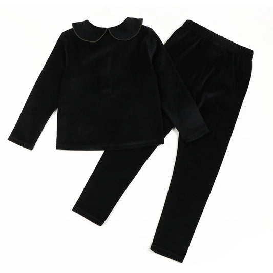 Winter clothes for baby and children baby girl winter 2pcs sets children's pants kids clothes girl black velour with green neck