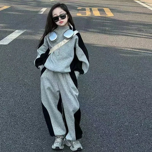Girls Casual Sweatshirts Sets Autumn Children Clothes Suits New Kids O-neck Pullover+Loose Pants 2Pcs Teen Sportwear Outfits
