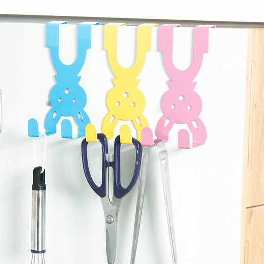 Traceless Cartoon Rabbit Hooks Bedroom Kitchen Door Hooks Clothes Bag Coat Dual Hanger Organizer Hanging Sundries Pothookesline