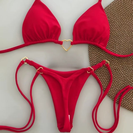 • New Nylon Solid Color Love Bikini Suit
