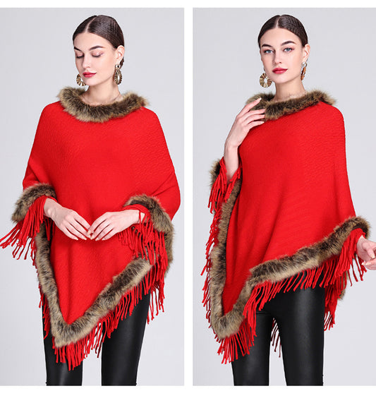 • Womens Fashion Winter Pullover Tassel Top With Fur Collar