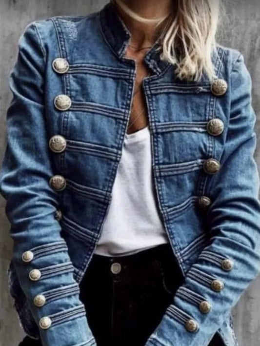 • Vintage Button Denim Jacket for Women Stand Collar Spring Winter Slim Casual Retro Jeans Outerwear Harajuku Denim Coat 2024