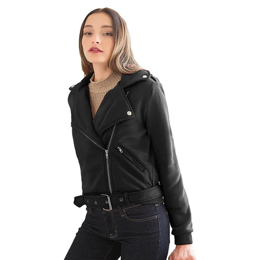2025 Women Bike Coat PU Leather Outwear Zipper Outfit Autumn Winter Wome Fashion Short Thin Female Jacket
