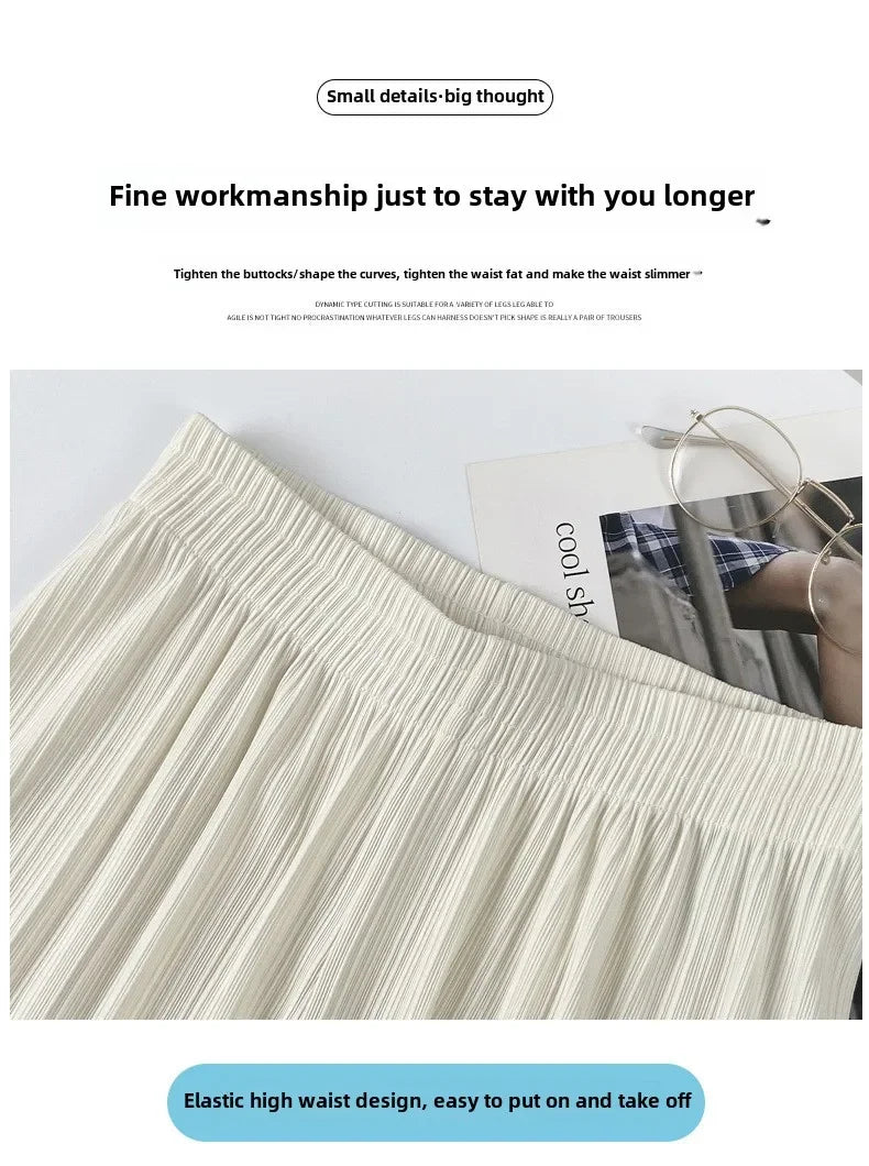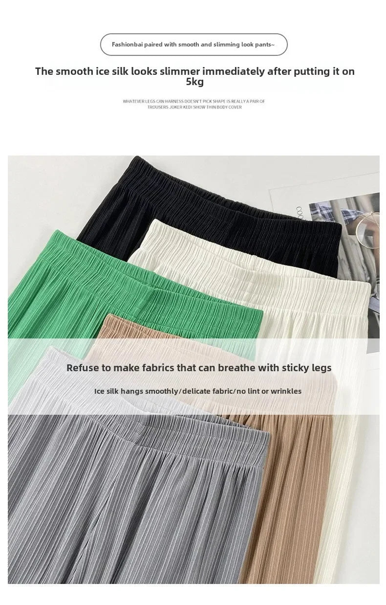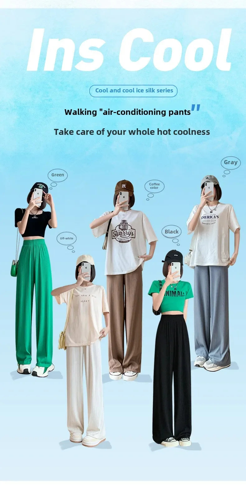 Korea Dongdaemun Ice Silk Wide-leg Pants Women's Thin Slimming Floor Pants White Striped Pants Y2K Fashion Pants Baggy