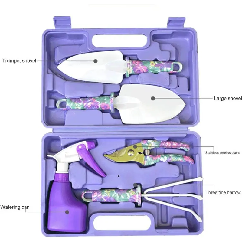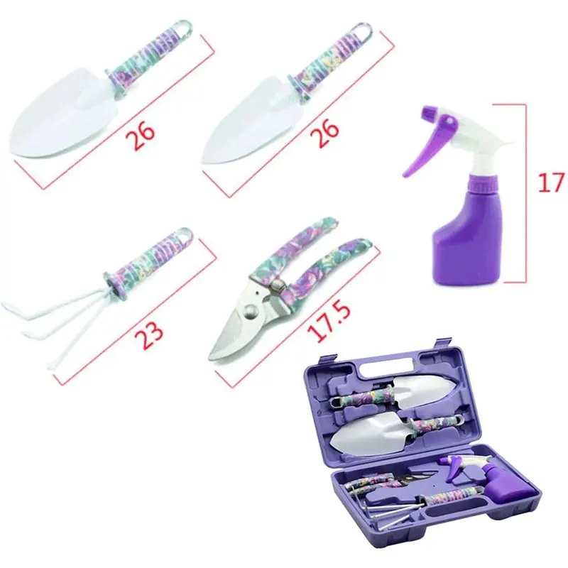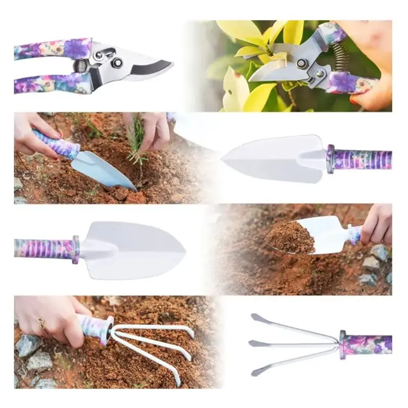 • ABKW-Garden Tool Set With Carrying Case,5 Piece Stainless Steel Gardening Kit With Floral Pattern Grass Flower Branch Trimmer