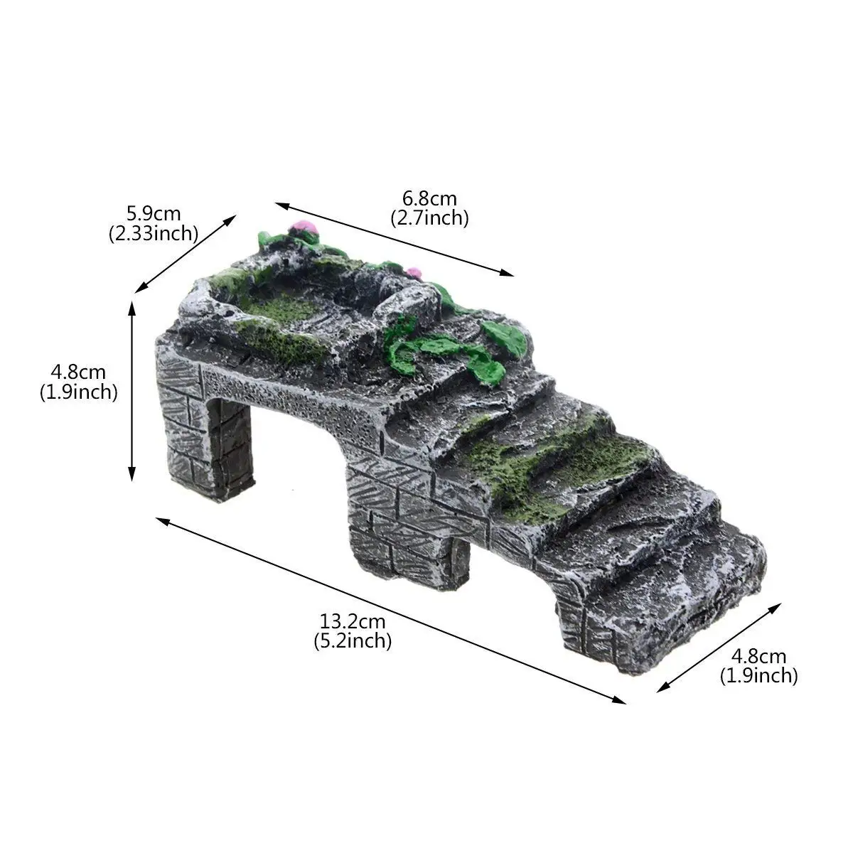 Ancient Ruins Aquarium Ornament, Resin Fish Tank Decoration with Stairs & Plants, Reptile Hideout Cave for Lizards, Turtles loading