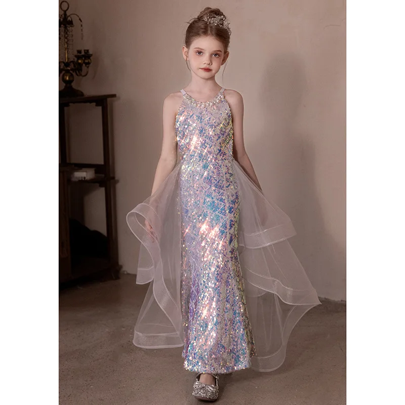 • Children's Princess Dress Shiny Sequined Dress For Girls 2Y 10 12 Years 14 Years Mermaid Elegant Teen Party Evening Dress