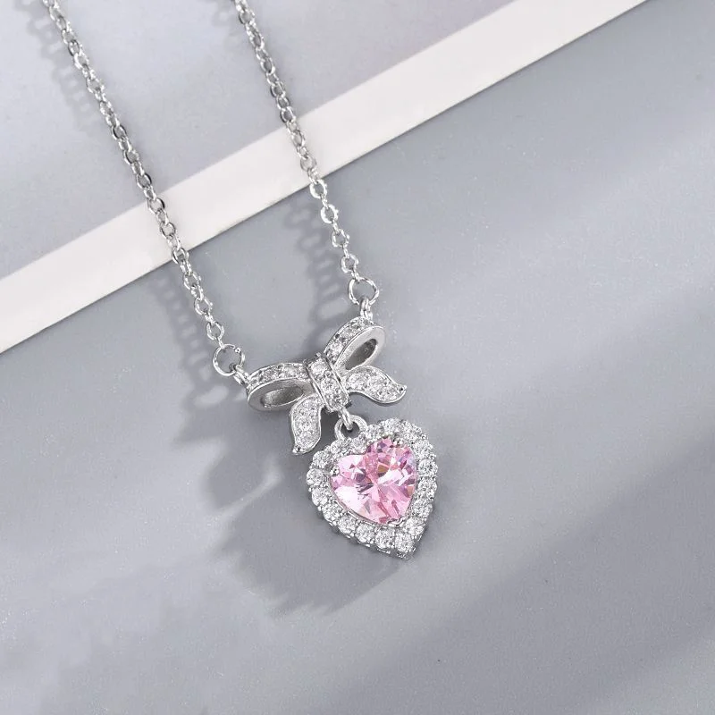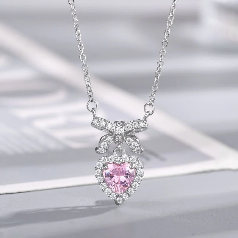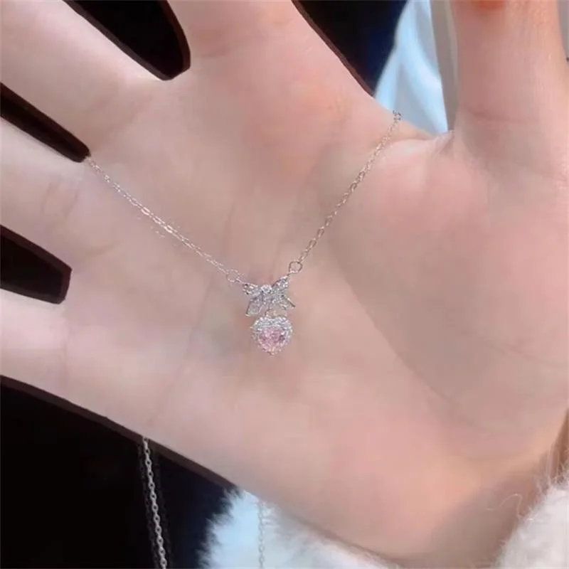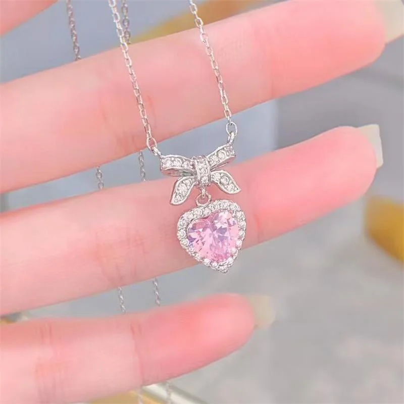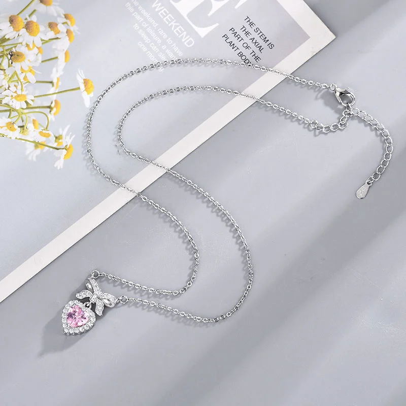 Exquisite Accessories, High-End Heart Bowknot Love Zircon Necklace; Luxury Clavicle Chain for Women Elegant Gift
