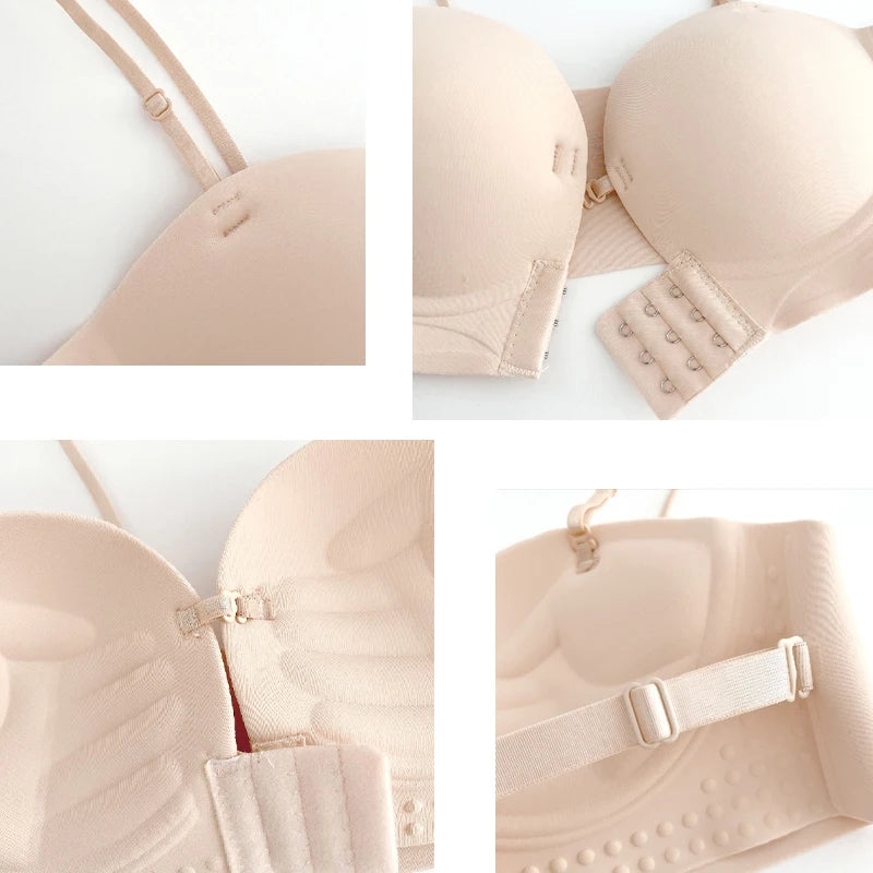 Front Closure Strapless Bras For Women Seamless Push Up Brassiere Thick Soft Underwear Solid Color Adjustable Invisible Lingerie loading