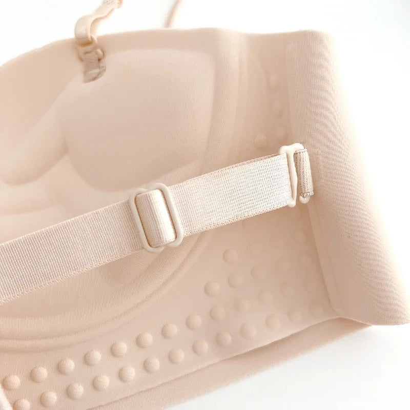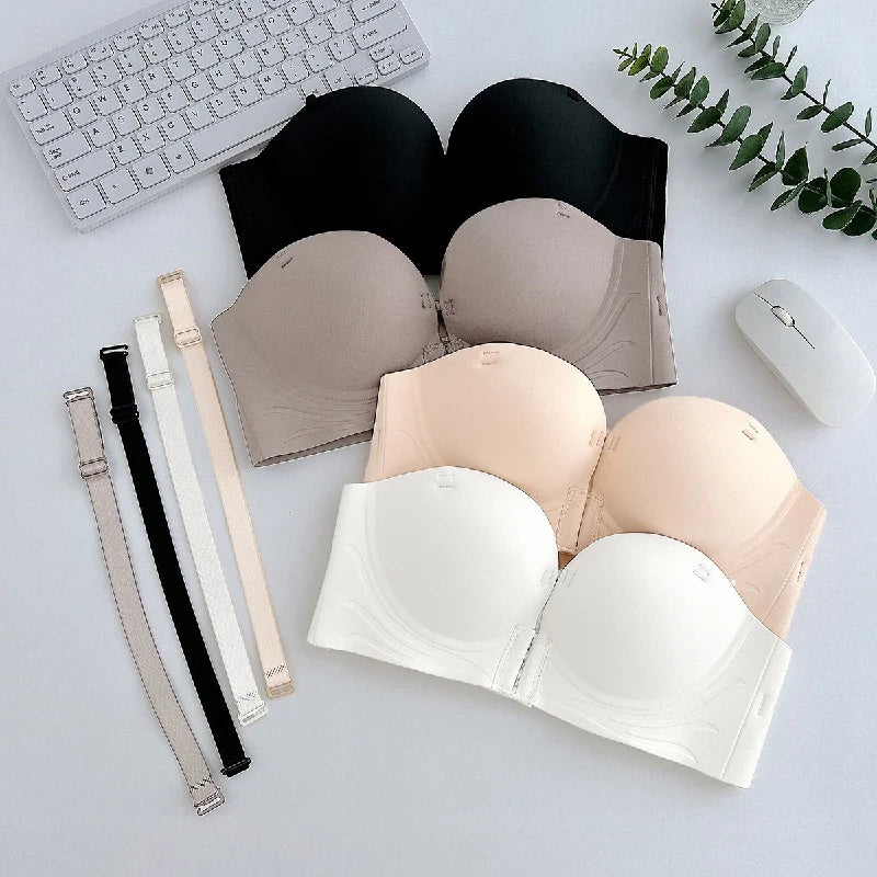 Front Closure Strapless Bras For Women Seamless Push Up Brassiere Thick Soft Underwear Solid Color Adjustable Invisible Lingerie