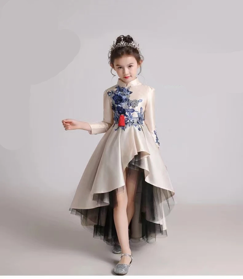 Girls' Fashion Evening Dress Children's Chinese Style Host Piano Performance Costume Dress Kids' Stand up Embroidered SkirtLI852 loading
