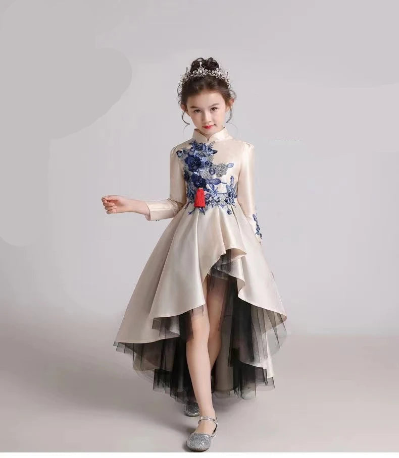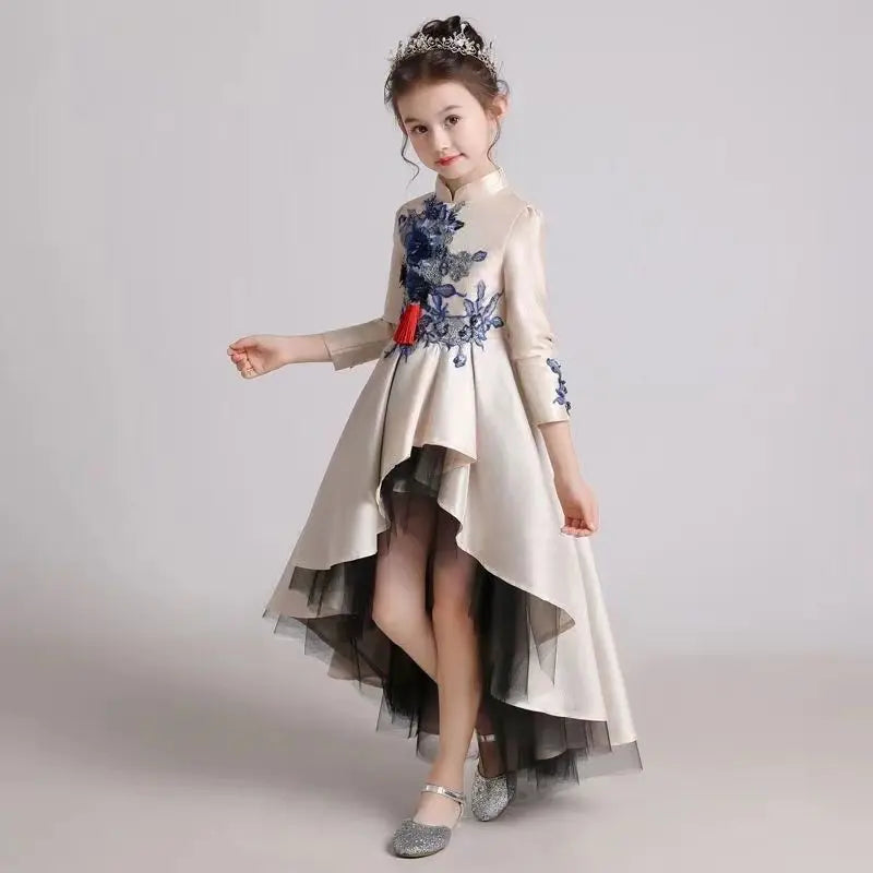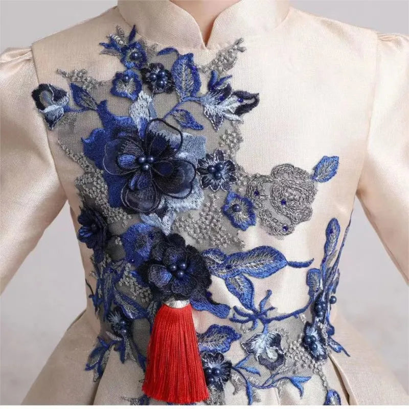 • Girls' Fashion Evening Dress Children's Chinese Style Host Piano Performance Costume Dress Kids' Stand up Embroidered SkirtLI852