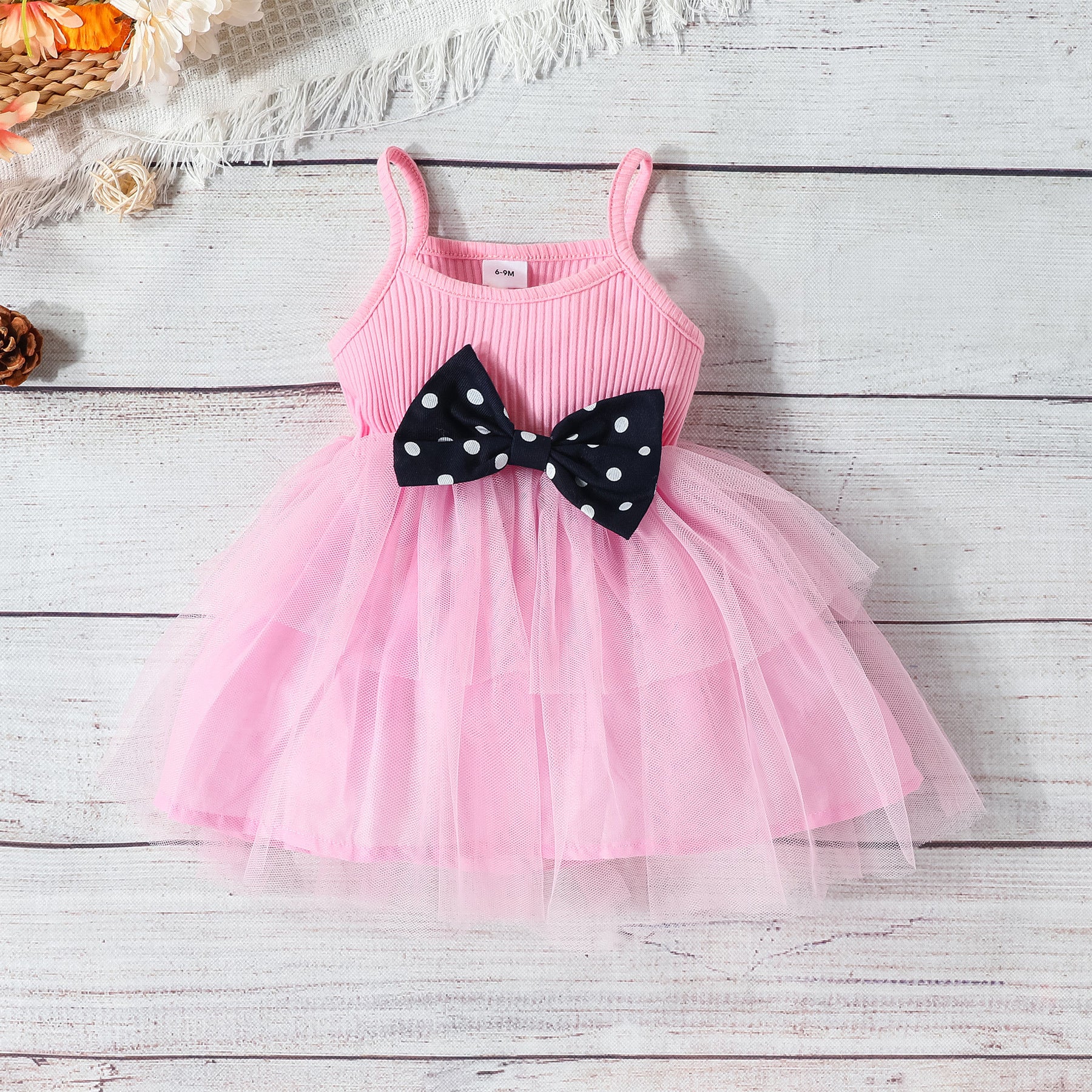 girls skirt suit baby and toddler sling mesh bow dress + polka dot lapel Tops