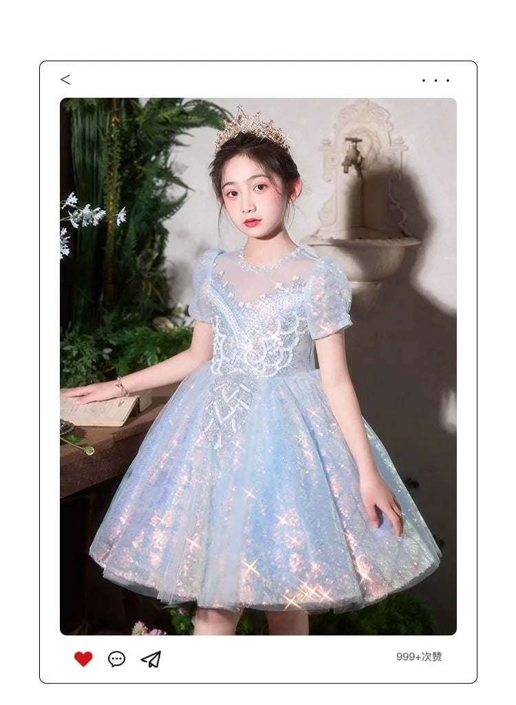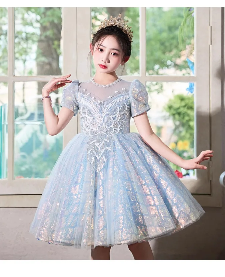 Party Dress Blue Girls Puffy Princess Dresses New Kids Gown Birthday Host Piano Recital Outfit Pageant Performance Formal Wear Party Dress Blue Girls Puffy Princess Dresses New Kids Gown Birthday Host Piano Recital Outfit Pageant Performance Formal Wear