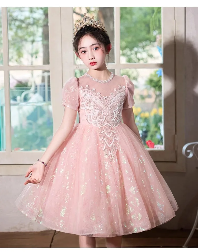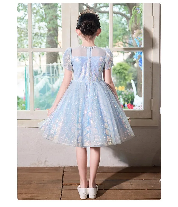 • Party Dress Blue Girls Puffy Princess Dresses New Kids Gown Birthday Host Piano Recital Outfit Pageant Performance Formal Wear