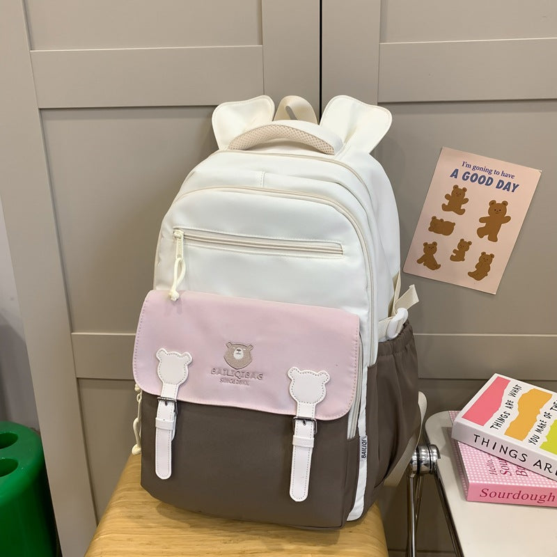 Retro Cute Contrast Color Backpack Women's Cartoon Casual Backpack loading