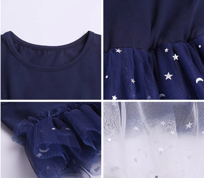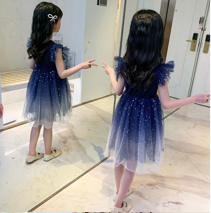 Summer Girl Dress Princess Star Sleeveless Tulle Girls Blue Sequin Tutu Dress