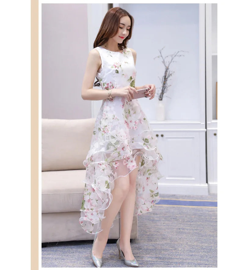 Summer High Low Retro Dress Vintage Women Sleeveless Front Back Short Long Organza Lace Dress Ladies Elegant Party Dress
