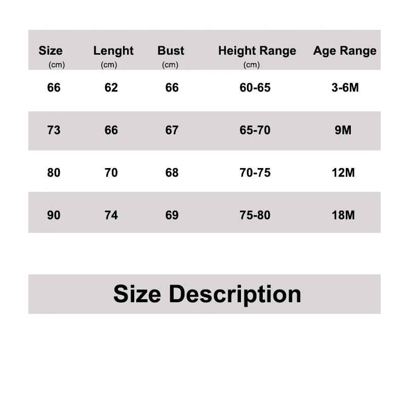 size_info: {"sizeInfoList":[{"length":{"cm":"66","inch":"25.98"},"size":"3-6M","vid":-1},{"length":{"cm":"67","inch":"26.38"},"size":"9M","vid":-2},{"length":{"cm":"68","inch":"26.77"},"size":"12M","vid":-3},{"length":{"cm":"69","inch":"27.17"},"size":"18M","vid":-4}]}